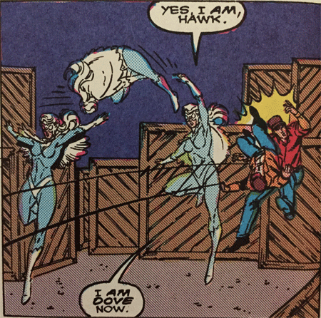 "It's hard to describe what happens when I become Dove. I've always been a good judge of people, but as Dove--it's like I'm working on a supernatural level. Each gesture reveals a thousand clues about a person. In seconds I know how everyone in a room will act and react...and it's not limited to people. For instance, if I see a chair, I can sense its weight, its potential. I know precisely where to strike it to most effectively trip up my attacker. I can sense exactly where a gun is pointed, feel when it is about to be fired. Everything is in sharp focus. I absorb every detail around me...I'm a defensive fighter, turning their own strengths and weaknesses against them. In a way, my enemies defeat themselves."
