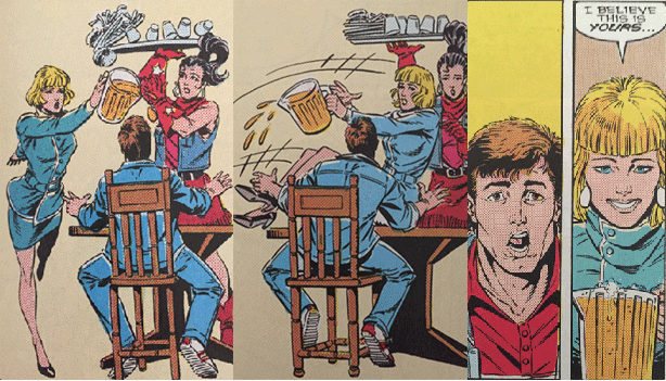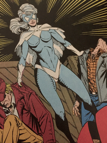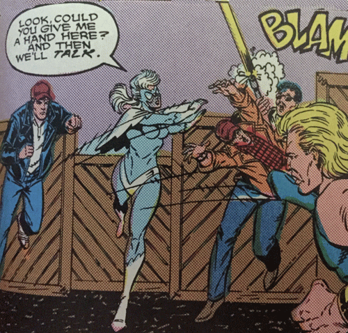 ![]() | But when this mysterious woman appears, displaying Dove powers and helping him win a fight with some street toughs, Hank is quite understandably angry. How DARE this girl try to replace Don? How DARE she try to help him? |